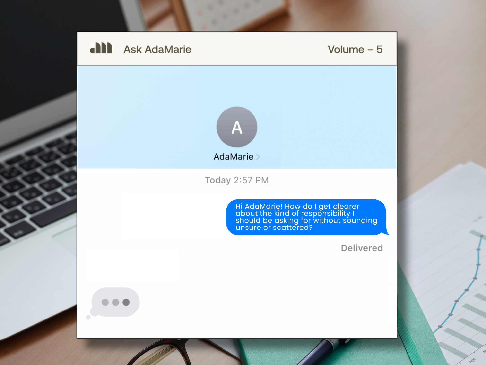 “Hi, AdaMarie! I know I want to grow, but I struggle to articulate what I actually want next. How do I get clearer about the kind of responsibility I should be asking for without sounding unsure or scattered?”