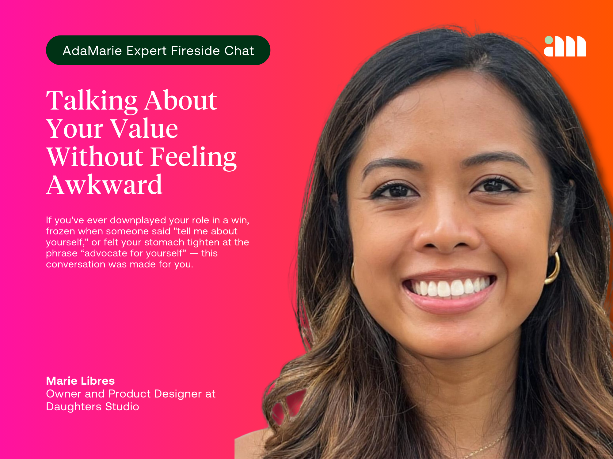 Talking About Your Value Without Feeling Awkward: 7 Takeaways from Our Fireside Chat with AdaMarie Expert Marie Libres
